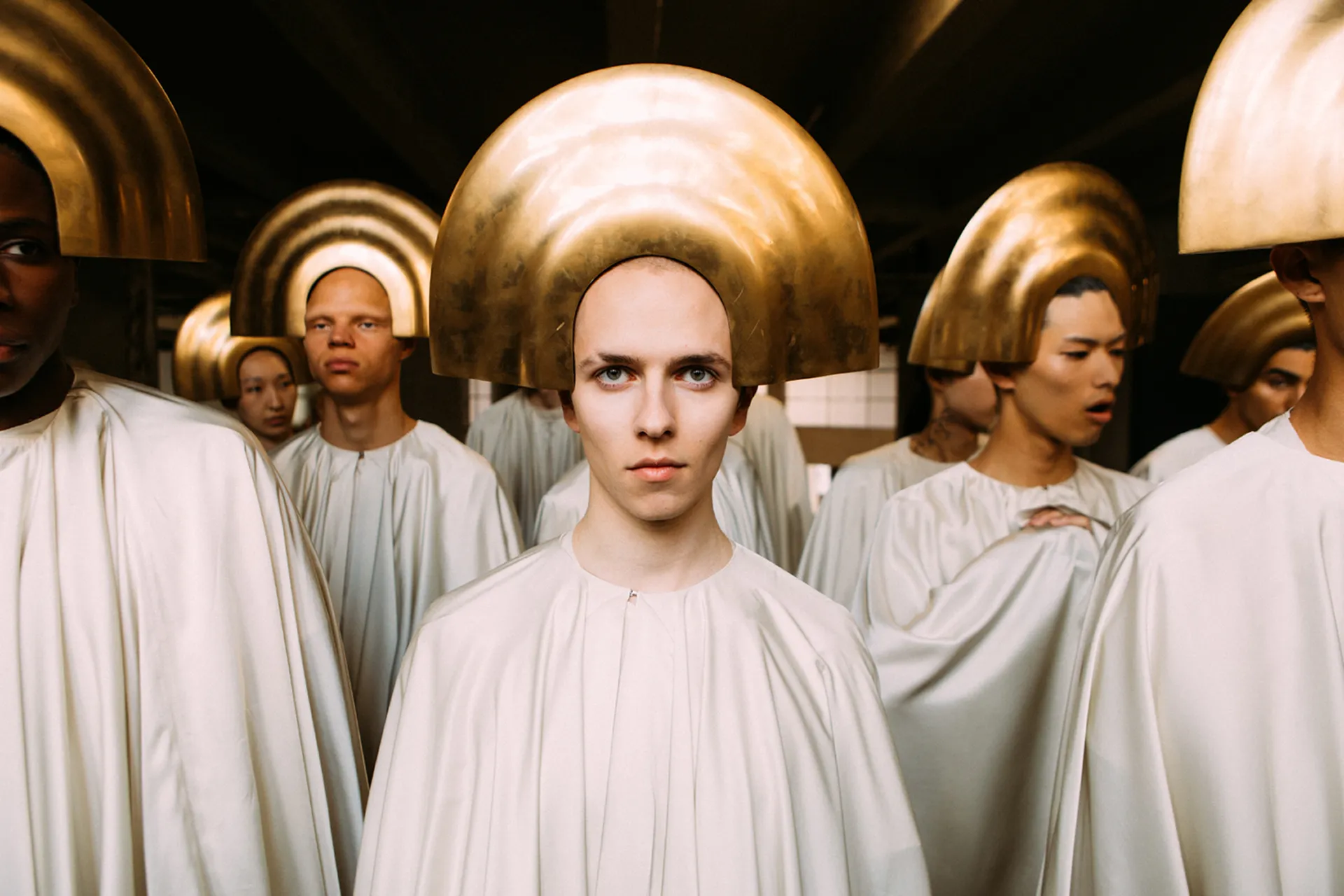 El diseñador Rick Owens transformó el Palais de Tokyo en un escenario industrial para su última colección en la Semana de la Moda de París. Modelos con cabezas rapadas y lentes de contacto desfilaron con botas imponentes y chaquetas de cuellos sobredimensionados, creando una estética alienígena e inquietante. La colección incluyó materiales como cuero tejido, chaquetas de cocodrilo blanqueado y denim tratado con bronce, enfatizando una sensación cruda e industrial.